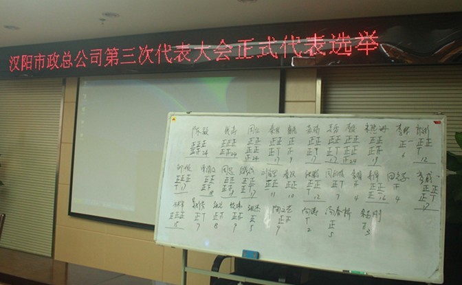 為配合漢陽市政總公司工會第三次代表大會的順利召開,武漢博宏建設有限公司將于2014年8月28日下午2:30在公司大會議室組織本全體職工代表進行民主選舉產(chǎn)生了17位漢陽市政總公司第三次代表大會正式代表。