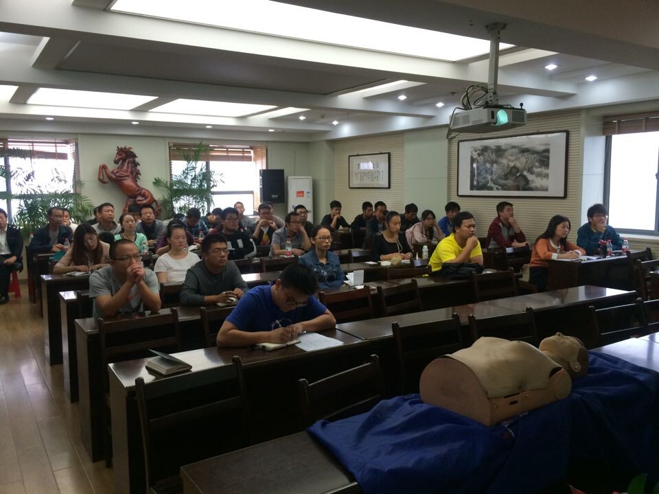 培訓(xùn)包括三部分,汪主任首先從職業(yè)健康安全角度出發(fā),詳細(xì)介紹了人體的幾大穴位以及按摩的方法;現(xiàn)場(chǎng)演示模擬了心肺復(fù)蘇和人工呼吸的搶救;最后對(duì)當(dāng)下霧霾天氣的產(chǎn)生和影響作了簡(jiǎn)單介紹,并告訴我們?nèi)绾蔚钟溆绊憽?/FONT>