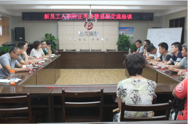 為深入了解見(jiàn)習(xí)期滿轉(zhuǎn)正員工思想動(dòng)態(tài),傾聽(tīng)他們對(duì)公司發(fā)展、個(gè)人成長(zhǎng)的意見(jiàn)、期望和訴求,幫助他們理清思路、找準(zhǔn)定位、合理進(jìn)行職業(yè)生涯規(guī)劃,7月14日上午,博宏建設(shè)召集13名2014年入職員工,開(kāi)展轉(zhuǎn)正員工考核暨思想交流座談會(huì),公司支部成員、總助、工會(huì)主席均出席此次座談會(huì)。