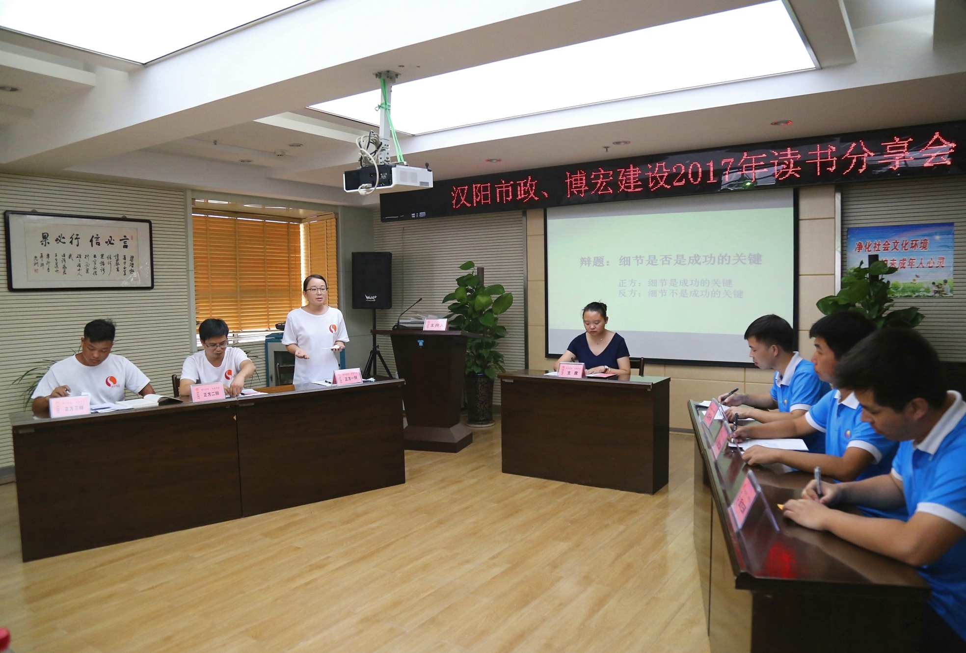 歌德曾說(shuō):“讀一本好書(shū)就是和高尚的人談話?!睗h陽(yáng)市政博宏公司為在全公司營(yíng)造濃厚的讀書(shū)氛圍,打造“書(shū)香博宏”,7月31日,一場(chǎng)關(guān)于“細(xì)節(jié)”的讀書(shū)分享活動(dòng)在公司大會(huì)議室順利召開(kāi),集團(tuán)公司辦公室副主任冷雪、各兄弟單位辦公室主任等均參加了本次活動(dòng)。