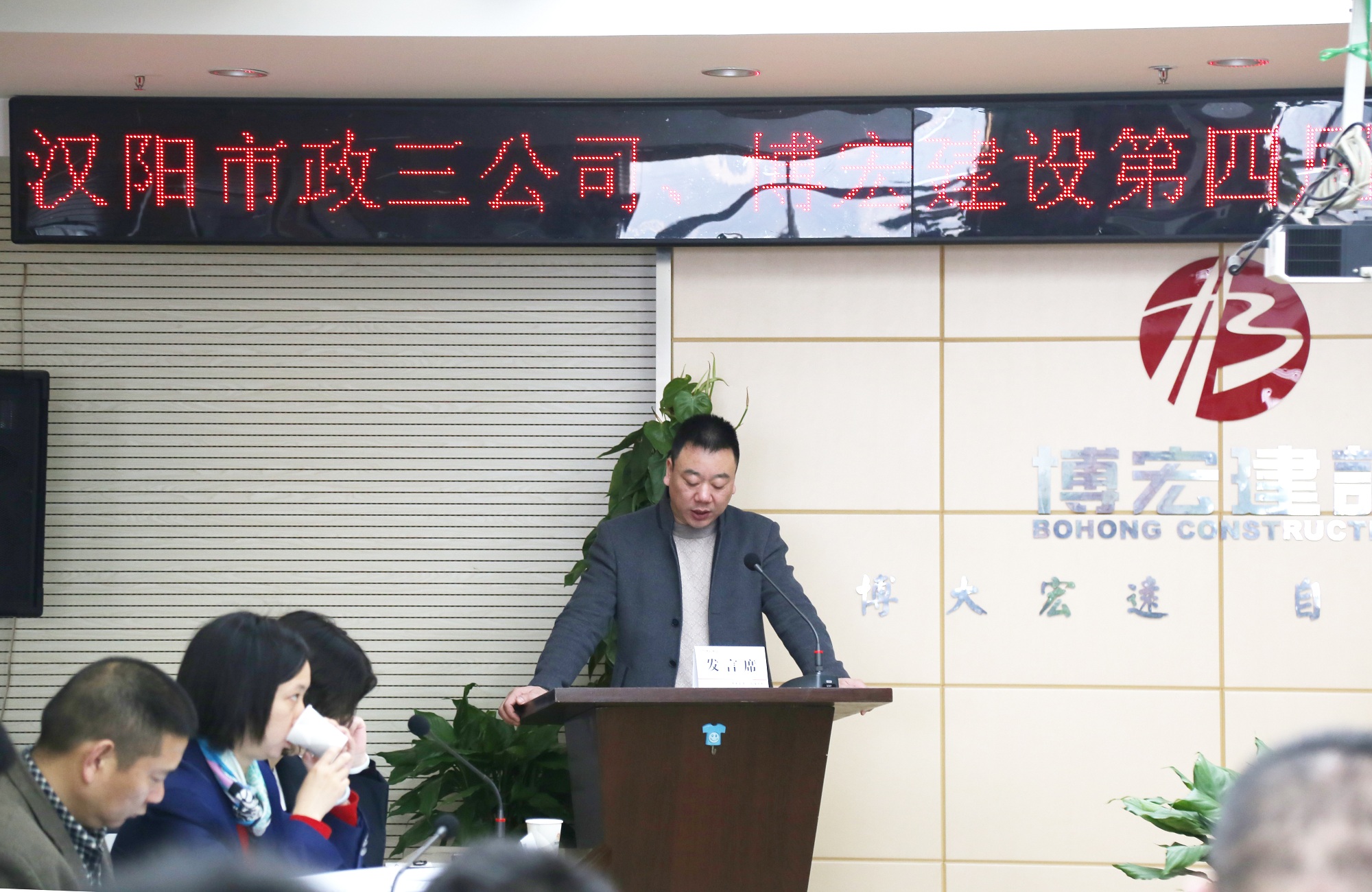 2018年3月23日上午,漢陽(yáng)市政三公司、博宏建設(shè)第四屆第二次聯(lián)合職工代表大會(huì)在莊嚴(yán)的國(guó)歌聲中順利開幕,漢陽(yáng)市政集團(tuán)公司副總經(jīng)理邢榮斌蒞臨會(huì)議現(xiàn)場(chǎng),公司領(lǐng)導(dǎo)班子及31名職工代表出席會(huì)議,會(huì)議由工會(huì)主席李俊主持。