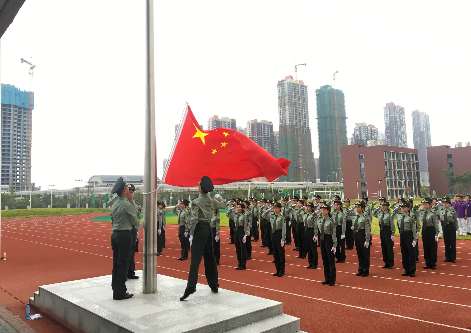 四新中學(xué)作為百年名校武漢市第三中學(xué)的新校區(qū),學(xué)校建設(shè)中曾先后榮獲“湖北省建筑結(jié)構(gòu)優(yōu)質(zhì)工程”“武漢市十大魅力工地”等多項(xiàng)省市級(jí)建筑獎(jiǎng)項(xiàng)。開(kāi)學(xué)典禮中,廣大學(xué)生匯集在寬闊的操場(chǎng)上,神采飛揚(yáng),朝氣蓬勃,國(guó)旗儀仗隊(duì)身姿挺拔、步履鏗鏘,盡顯名校風(fēng)采。