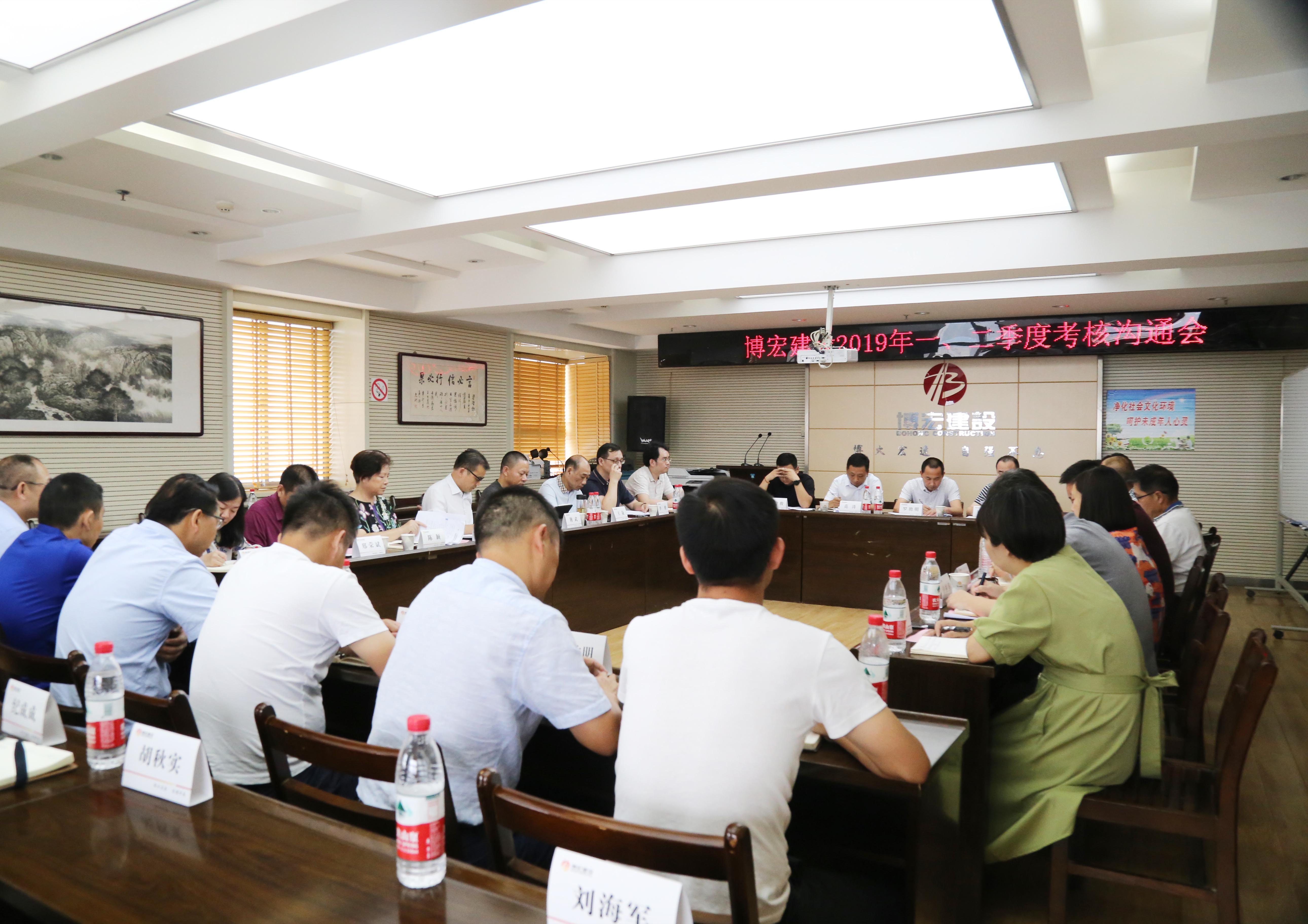 ?????????? 7月9日下午2:30,公司2019年一、二季度考核溝通會(huì)順利召開,會(huì)議就博宏建設(shè)上半年考核工作目標(biāo)完成情況進(jìn)行了分析和交流,并就下半年工作思路進(jìn)行進(jìn)一步明確。漢陽市政集團(tuán)公司黨委班子、各科室負(fù)責(zé)人、博宏建設(shè)支部班子、各部門負(fù)責(zé)人、項(xiàng)目經(jīng)理及技術(shù)負(fù)責(zé)人共計(jì)40余人參加了此次會(huì)議。