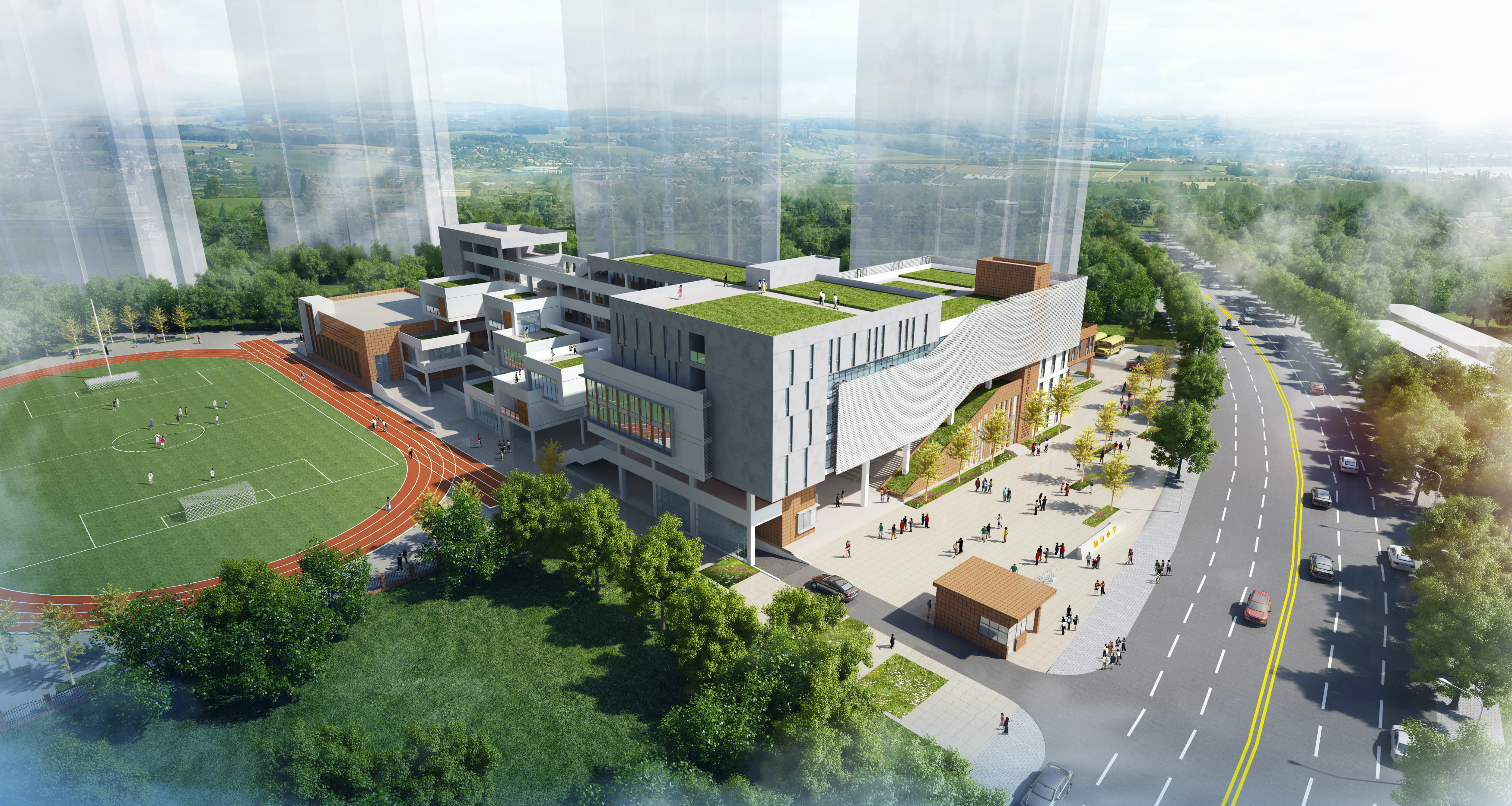 建設內(nèi)容:1棟五層,局部兩層的集教學、行政辦公一體的綜合樓,1棟兩層集風雨操場、報告廳一體的綜合樓,同步建設室外環(huán)形跑道、6道直跑跑道、足球場、籃球場、羽毛球等運動場地,以及供配電、給排水、道路及綠化等配套設施。