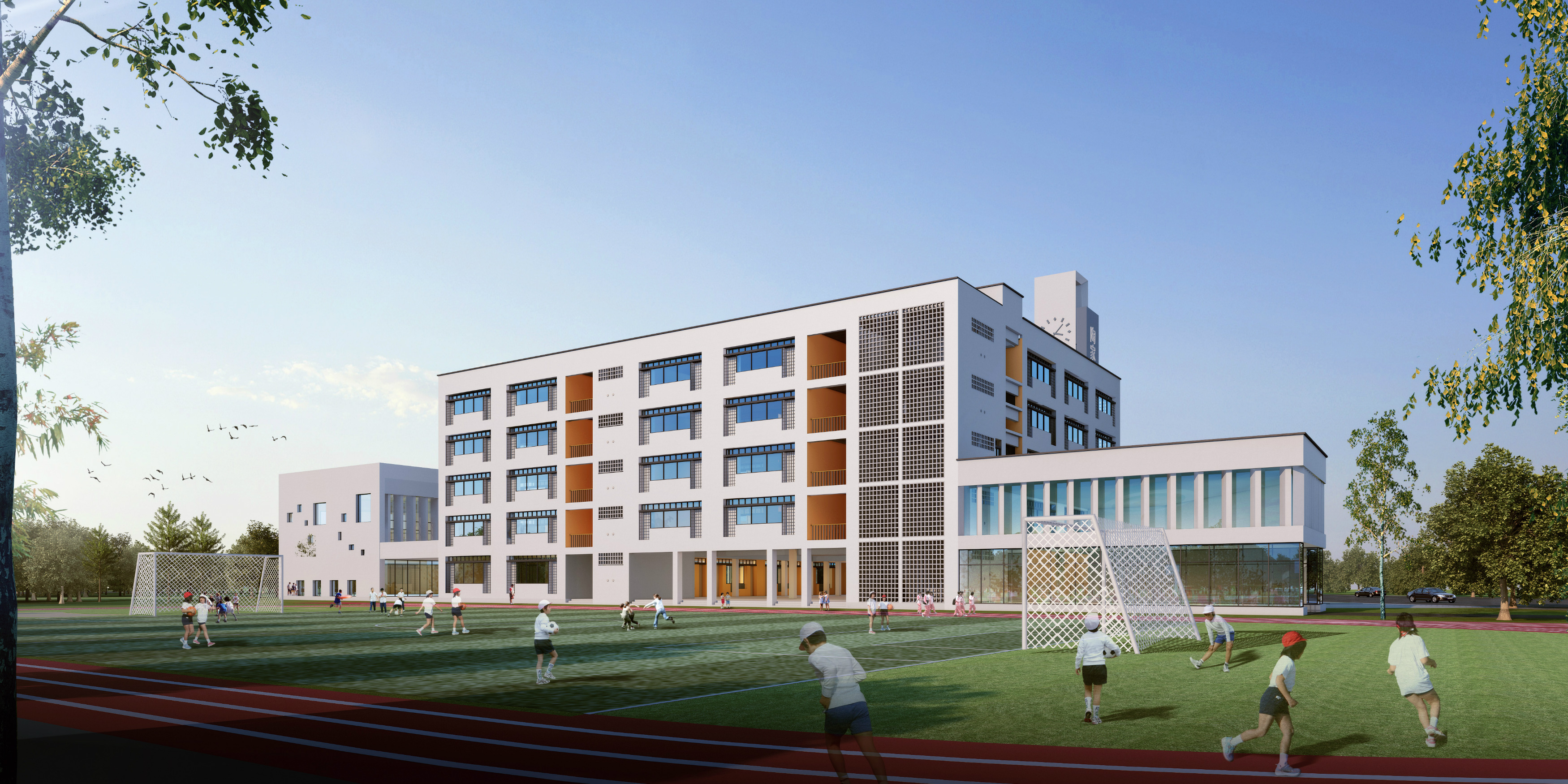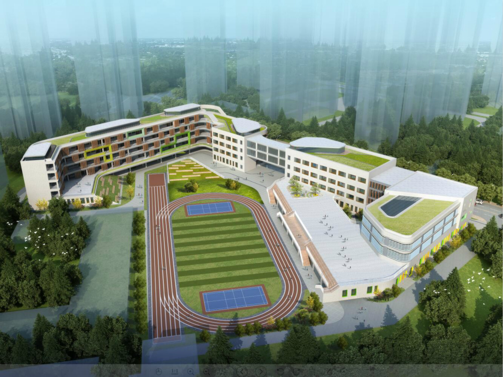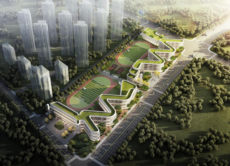 建設內(nèi)容:六層教學綜合樓 1 棟,配套建設學校大門、道路及停車場、運動場地(含足球場、籃球場、羽毛球場、器械區(qū)、跑道等)、綠化等工程。