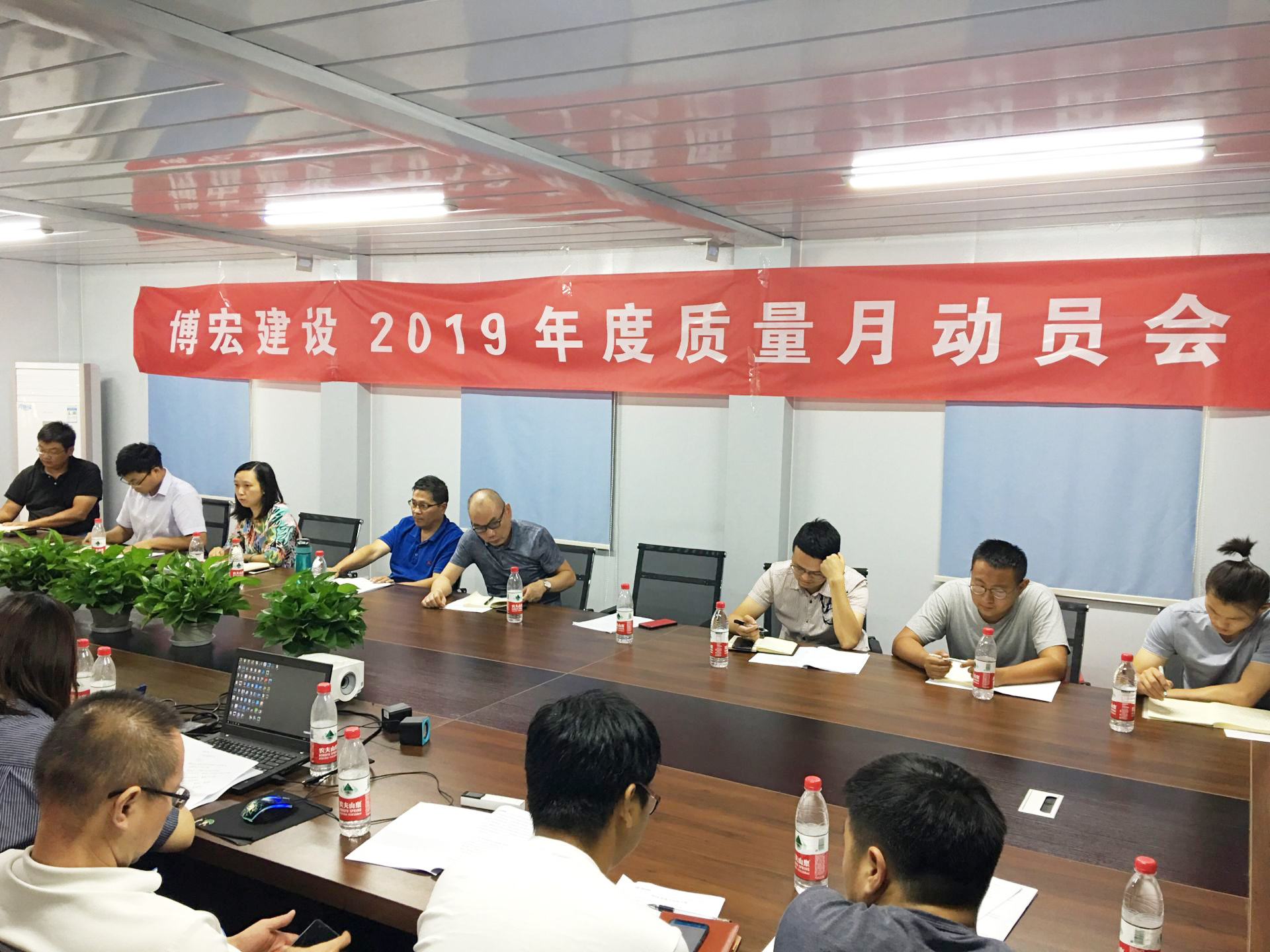 今年9月是全國(guó)第42個(gè)“質(zhì)量月”,為響應(yīng)“共創(chuàng)中國(guó)質(zhì)量,建設(shè)質(zhì)量強(qiáng)國(guó)”的活動(dòng)主題,提高質(zhì)量意識(shí),落實(shí)質(zhì)量責(zé)任體系,9月25日, 博宏建設(shè)2019年質(zhì)量月動(dòng)員會(huì)在漢陽(yáng)市政建設(shè)大廈項(xiàng)目部會(huì)議室成功舉行,會(huì)議要求各項(xiàng)目部要提前策劃、精心部署,從現(xiàn)場(chǎng)實(shí)際出發(fā),切實(shí)加強(qiáng)公司工程質(zhì)量管理工作,開(kāi)展多種形式的“質(zhì)量月”活動(dòng),為高品質(zhì)工程的建設(shè)保駕護(hù)航。黨支部副書(shū)記郭一清布置了活動(dòng)具體任務(wù)和要求,宣布“質(zhì)量月”活動(dòng)啟動(dòng),正式拉開(kāi)了公司“質(zhì)量月”系列活動(dòng)的帷幕。
