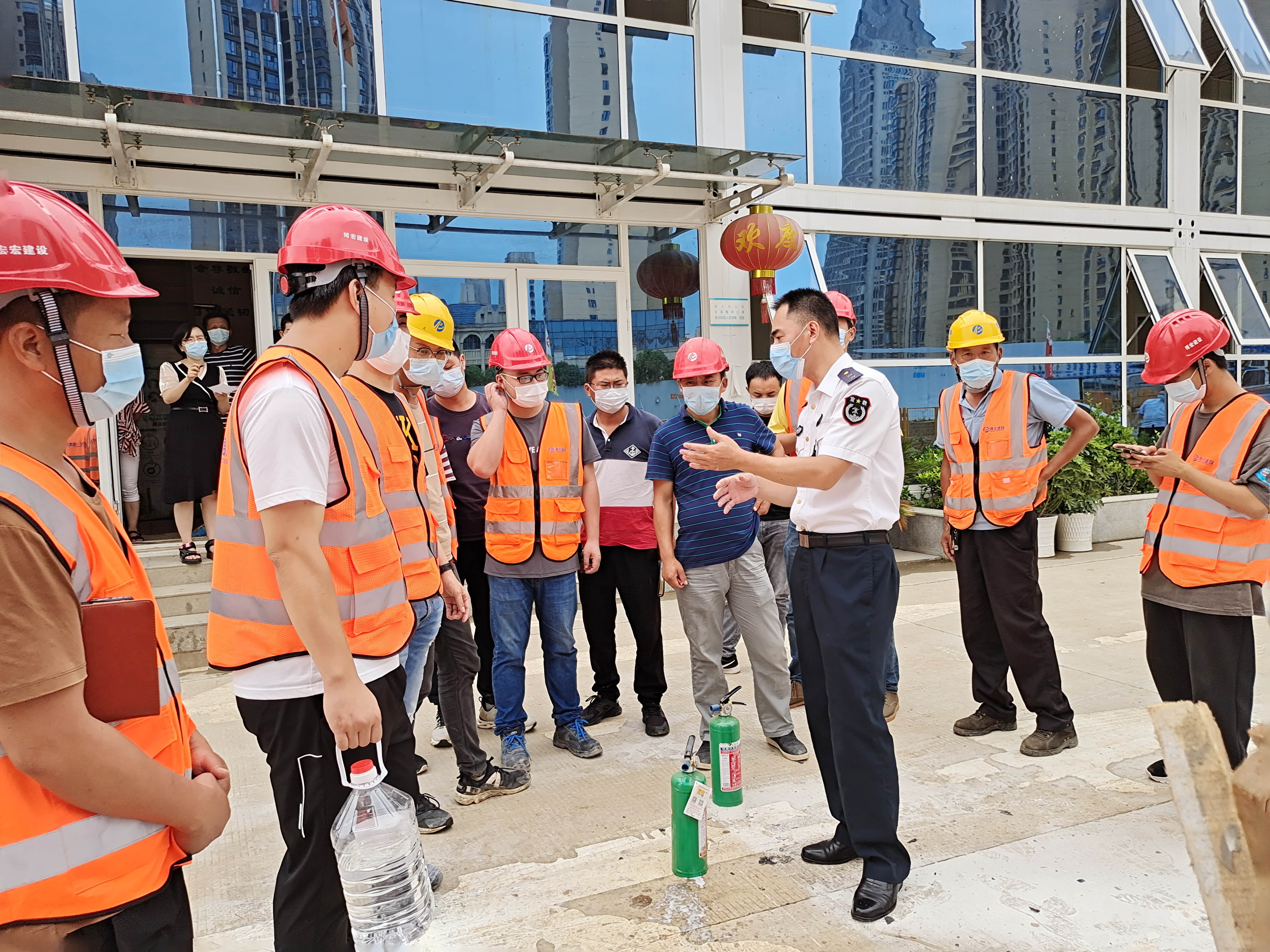 演練中,公司邀請到湖北省楚安防火宣教中心謝小秋教官來到項目現(xiàn)場進行了消防安全知識講解。期間,重點介紹了各類滅火器的使用方法和適用場景,并現(xiàn)場進行了演示。