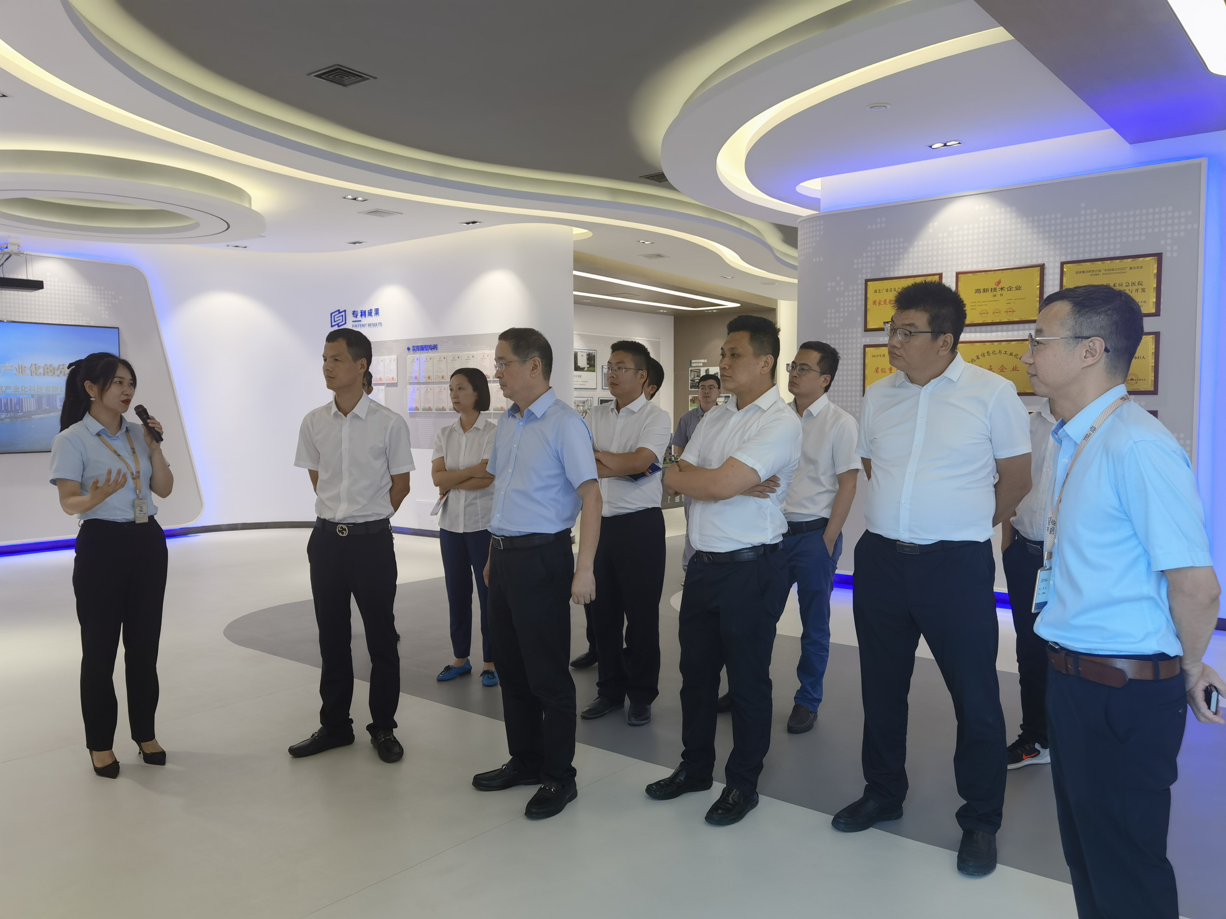 上午,鄒勇一行首先來到廣盛集團旗下的合資公司——湖北廣盛建筑產業(yè)化科技有限公司,該公司是一家集建筑設計、生產、施工、研發(fā)、培訓于一體的裝配式建筑國家高新技術企業(yè),具有較強的裝配式建筑預制構件的生產、安裝能力。鄒勇一行走進企業(yè)展廳、裝配式構建樣板區(qū)、裝配式構件生產區(qū)進行參觀。