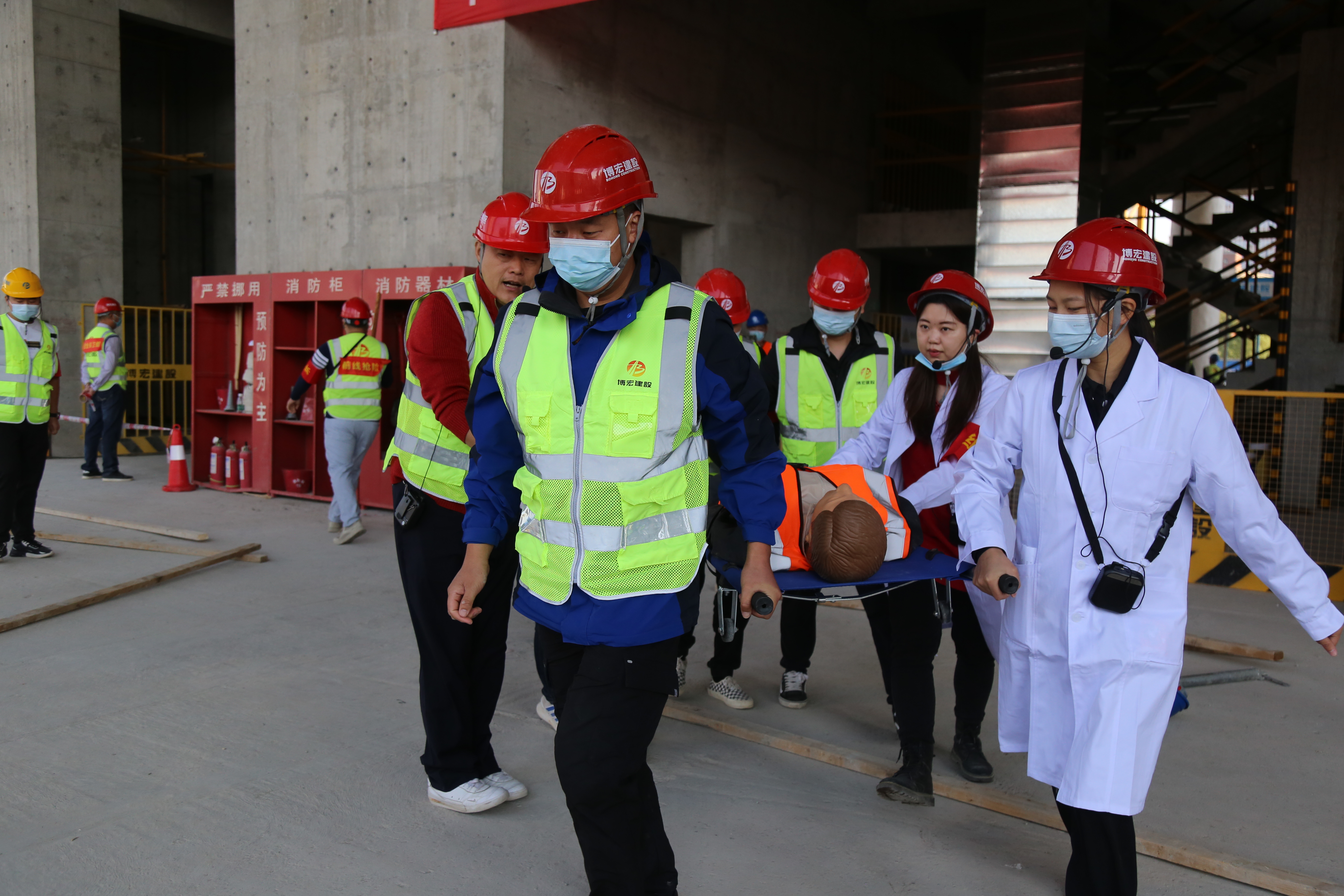 15日上午,一場(chǎng)緊張的安全生產(chǎn)應(yīng)急演練在博宏建設(shè)集團(tuán)中南科研設(shè)計(jì)中心項(xiàng)目舉行。武漢市城鄉(xiāng)建設(shè)局質(zhì)量安全管理處副處長(zhǎng)孫斌,武漢市漢陽(yáng)區(qū)建設(shè)局黨組成員、建筑管理站站長(zhǎng)王晟,武漢市漢陽(yáng)區(qū)建筑管理站工會(huì)主席王永進(jìn),武漢市漢陽(yáng)市政建設(shè)集團(tuán)有限公司質(zhì)安部部長(zhǎng)程振東,博宏建設(shè)集團(tuán)黨委書(shū)記、董事長(zhǎng)、總經(jīng)理鄒勇觀摩了本次安全演練活動(dòng),現(xiàn)場(chǎng)30余人參與演練。