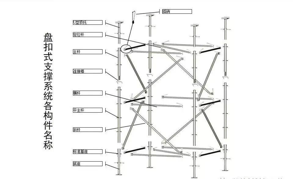 盤扣式腳手架桿件規(guī)格多、適用性強(qiáng),可用于搭設(shè)安全通道、爬梯、各種模板支架、外架等。
