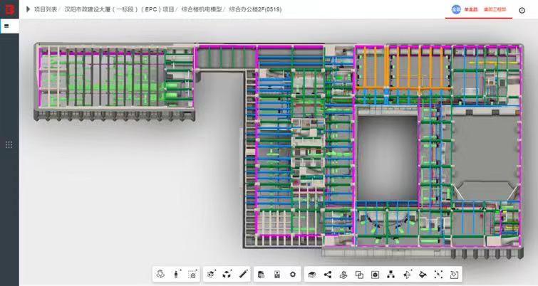 研究生期間彭迎研究的方向是BIM技術土建方向,但工作需要盡快上手的是BIM技術機電方向,一時讓她有點手足無措,“有問題先嘗試解決,辦法總比困難多”踏實肯干的她選擇了迎難而上,白天她跟著師傅們不厭其煩地穿梭于現(xiàn)場的各個樓棟,在工作過程中多看、多問、多記、多學,晚上回到宿舍,她通過閱讀大量BIM機電方向相關書籍以及上網課等方式自學相關知識,有時為了弄懂一個問題常常奮戰(zhàn)到深夜。從入門到逐漸架構起整個知識體系,彭迎經歷了半年的時間。在自學期間,她遇到了很多困難和瓶頸,但因為熱愛,從未想過放棄。“那段時間很累但是也很充實,每天都能學習到新的東西,讓我對機電的了解越來越深入,也越發(fā)體會到了BIM的魅力??粗约豪L制的BIM圖紙粘貼在了施工墻上,工人按照圖紙可以搭建出符合標準的砌體,心中的喜悅是無法用語言描述的。”回憶起那段時光時,她臉上總是帶著微笑。理論上的認真鉆研,現(xiàn)場中的建模實踐,彭迎的專業(yè)技術在不懈努力中愈見純熟,在負責總部大樓地上部分機電BIM工作過程中考取了BIM二級設備證,也和同事們一起獲得了多項國家級、省市級BIM獎項,熱愛與進取讓她一次次品嘗到了成功的碩果。