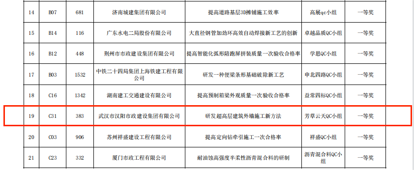 近日,中國建筑業(yè)協(xié)會(huì)、中國施工企業(yè)管理協(xié)會(huì)與中國市政工程協(xié)會(huì)工程建設(shè)質(zhì)量管理小組活動(dòng)成果大賽獲獎(jiǎng)名單陸續(xù)出爐,基于中南科研設(shè)計(jì)中心建設(shè)項(xiàng)目現(xiàn)場(chǎng)情況總結(jié)出的《施工電梯基礎(chǔ)支撐體系的研制》、《提高鋼結(jié)構(gòu)對(duì)接焊縫驗(yàn)收合格率》與《研發(fā)超高層建筑外墻施工新方法》3項(xiàng)QC成果榮獲國家級(jí)獎(jiǎng)項(xiàng)。