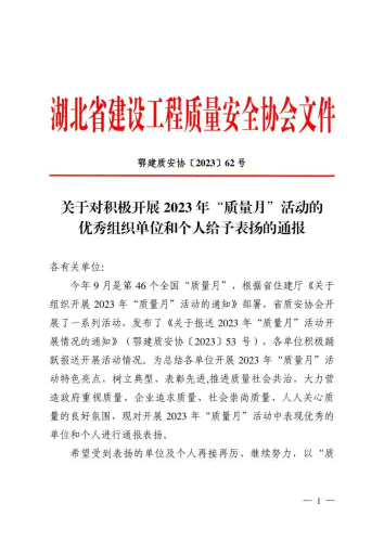 近日,博宏建設(shè)榮獲湖北省建設(shè)工程質(zhì)量安全協(xié)會2023年“質(zhì)量月”活動優(yōu)秀組織單位表彰,李德江、江緒芫、吉澤帥、鄭智秋、王杰、王小勇、劉陽、馬滕、郭永寧、柯善偉共10人榮獲2023年“質(zhì)量月”活動優(yōu)秀個(gè)人表彰。