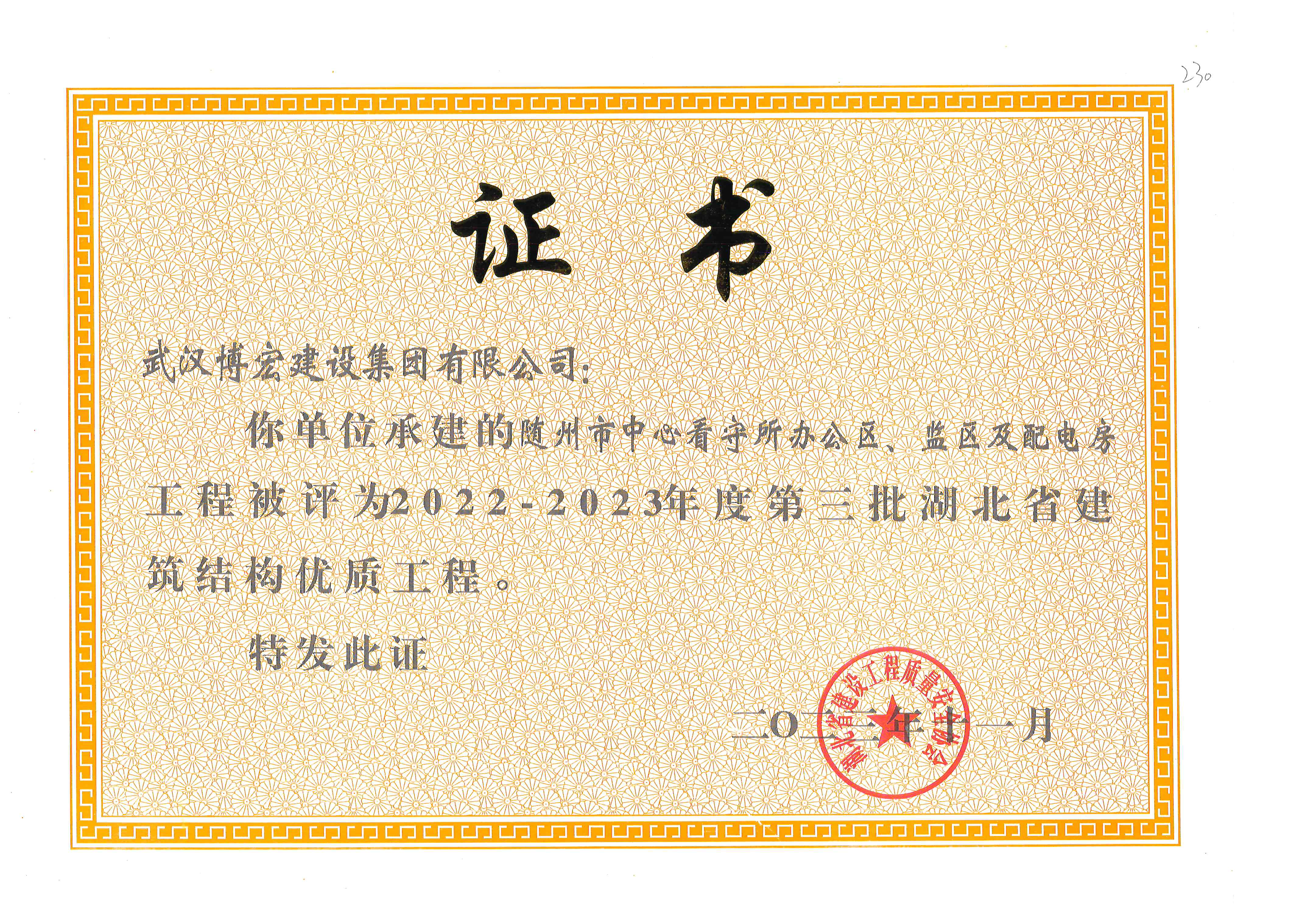 近日,湖北省建設(shè)工程質(zhì)量安全協(xié)會(huì)公布2022-2023年度第三批湖北省建筑結(jié)構(gòu)優(yōu)質(zhì)工程項(xiàng)目名單,由博宏建設(shè)集團(tuán)承建的居住項(xiàng)目(黃金口村還建房B地塊)17#樓,居住項(xiàng)目(四臺(tái)村還建房B地塊)1#樓,新建商業(yè)服務(wù)業(yè)設(shè)施項(xiàng)目(中南科研設(shè)計(jì)中心)副樓,商業(yè)、商務(wù)設(shè)施、居住項(xiàng)目(產(chǎn)權(quán)調(diào)換房)3#樓、6#樓,國投·汀蘭7#樓、8#樓、9#樓、12#樓,隨州市中心看守所辦公區(qū)、監(jiān)區(qū)及配電房榮獲湖北省建筑結(jié)構(gòu)優(yōu)質(zhì)工程獎(jiǎng)。