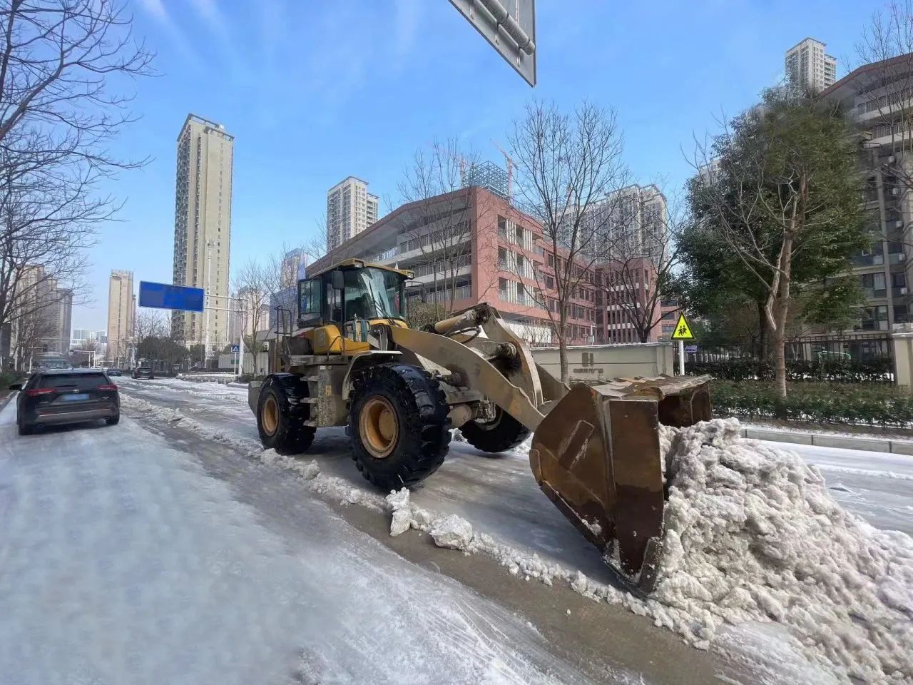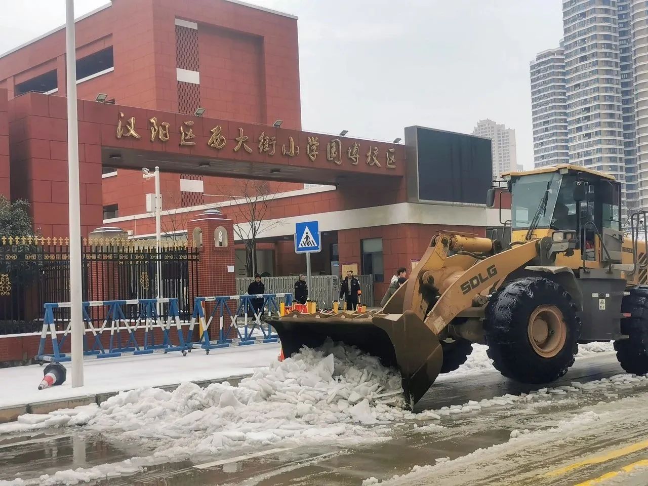 本次應(yīng)急行動累計出動61人次,鏟車14臺,巡查車輛7臺,撒鹽車輛3臺,撒融雪劑0.5噸,共對五里墩小學(xué)、翠微中學(xué)、七里小學(xué)、武漢市第三中學(xué)、西大街至誠小學(xué)、墨水湖小學(xué)東校區(qū)等八所學(xué)校道路的積雪進行了清理,并鏟除路面結(jié)冰。