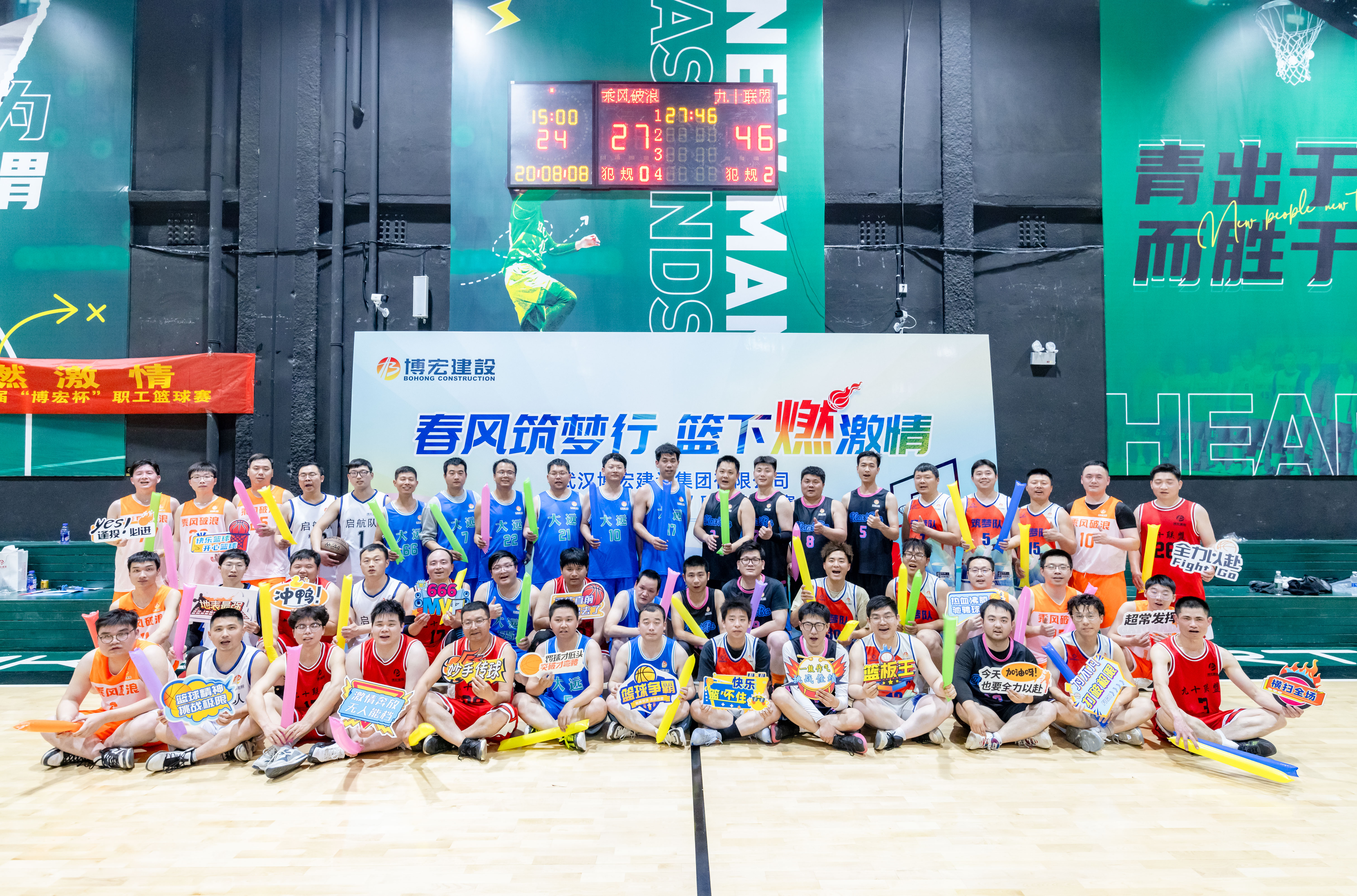 在嘹亮的運(yùn)動(dòng)員進(jìn)行曲中,由各部門(mén)及項(xiàng)目部組成的6支代表隊(duì)整齊有序,入場(chǎng)亮相,球員們氣宇軒昂、步伐鏗鏘,氣勢(shì)高昂的喊出隊(duì)伍口號(hào),充分展示著博宏人青春、陽(yáng)光、積極向上的精神面貌。